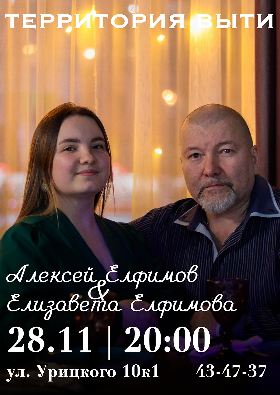 Друзья, спешим сообщить отличную новость! 28 ноября в гости к «Территории Выти» снова возвращается прекрасный семейный дуэт — Алексей и Елизавета Елфимовы.